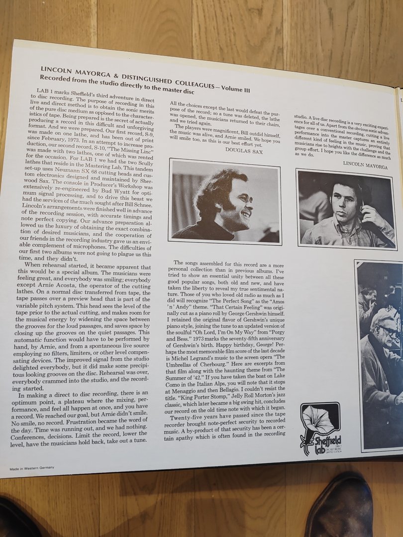 Er det en Alan Yoshida mastering?Selve Mastertapen var flybåren fra USA til Japan av Doug Sax som var fra Sheffield Lab. Var avbildet på innercover. Ikke mange som kan dokumentere det på alle disse kostbare som folk kjøper. Her har det vært godkjenning. På CD så er ekstra opptak spor med take 2 av flere låter. Denne CD'er heller ikke billig. Nå er den vanskelig eller umulig å få tak. Har flere Direct To Disch LP fra Sheffield Lab.