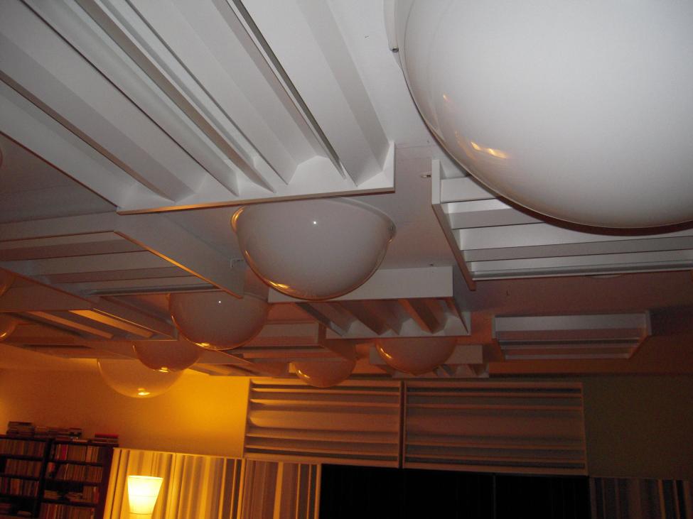 Taket med halvkulene som utgangspunkt: Man har tre ulike størrelser (dybder) i tillegg til taket som alene vil gi en liten temporal diffusjon som er maks ved tuppen av kuglen. I tillegg vil man så alle mulige ulike vinkler som sprer ulikt i alle retninger som i sum gir enda større temporale forskjeller. De refleksjonene som treffer lyttesposisjon direkte vil få svakest temporal forskjell, men siden taket sprer i alle retninger vil det i sum gi et godt diffust lydfelt. Polyer sentrerer frekvenser når de sammen danner noe som likner en konkav form. Kuglene er plassert med stor nok avstand til at man unngår disse fokuseringene.