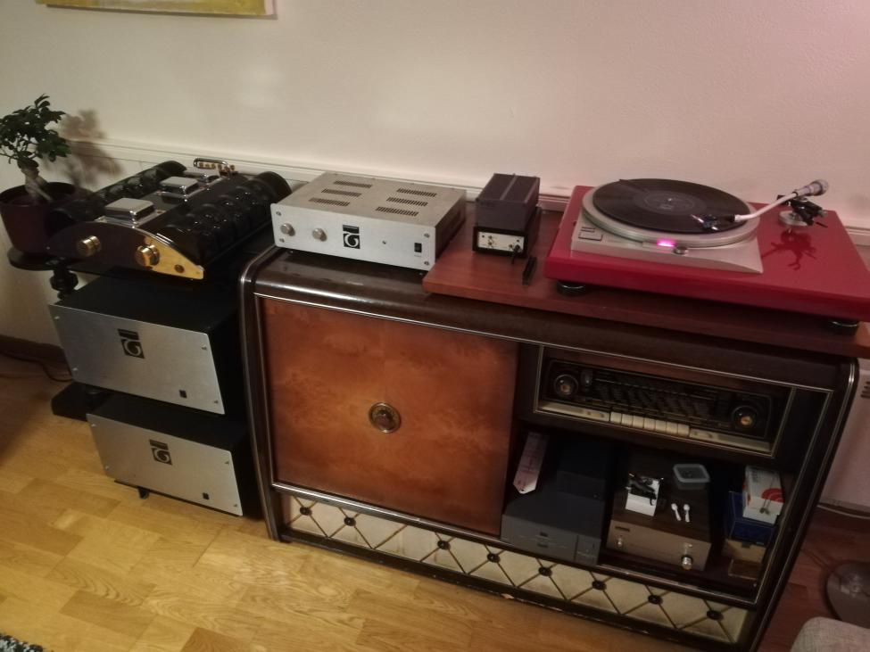 Tenkte å legge ut noe bilder av anlegget mitt, for tiden består den av quad esl 2805, Trancendent pre, transcendent T8 otl monoblokker, Whest PS . 20 riaa, zyx ccp 1step up, Technics SP 25 med Denon da 308 tonearm og forskjellig pickuper jeg bytte innimellom. Bruker også chromecast audio og Proceed DAC men det går mest i vinyl har hjemme! Har lenge vært glad i quad høytalere og sammen med min Otl forsterkere spiller de ekstremt realistisk og forsvinner ut i rommet når de er plassert riktig. Rommet er ikke optimalt men fungere overraskende bra. Quadene trives best >1.5 m fra bakvegg.