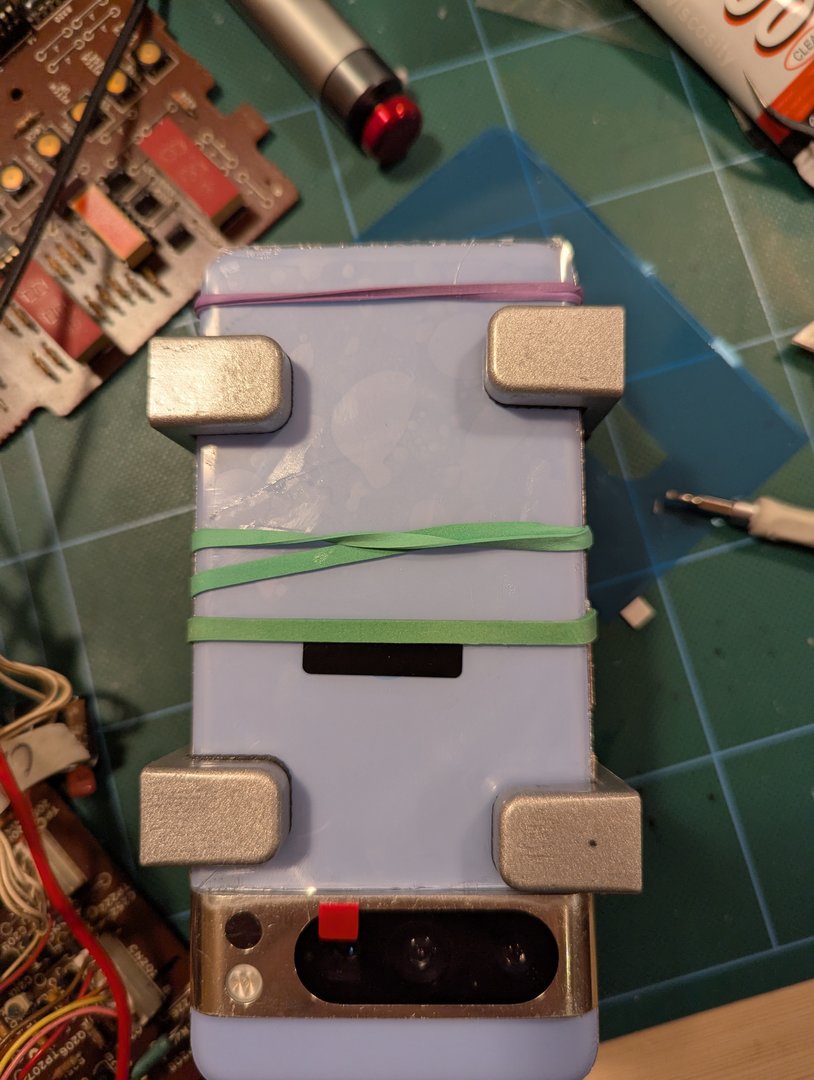 Ladespolen var limt fast i det knuste bakglasset, men jeg greide akkurat å redde den. Nå må jeg plukke/støvsuge opp mikroskopiske glassbiter fra ca overalt. Foretrekker gamle, humørsyke japanske platespillere foran dette, mye mindre gris med dem.