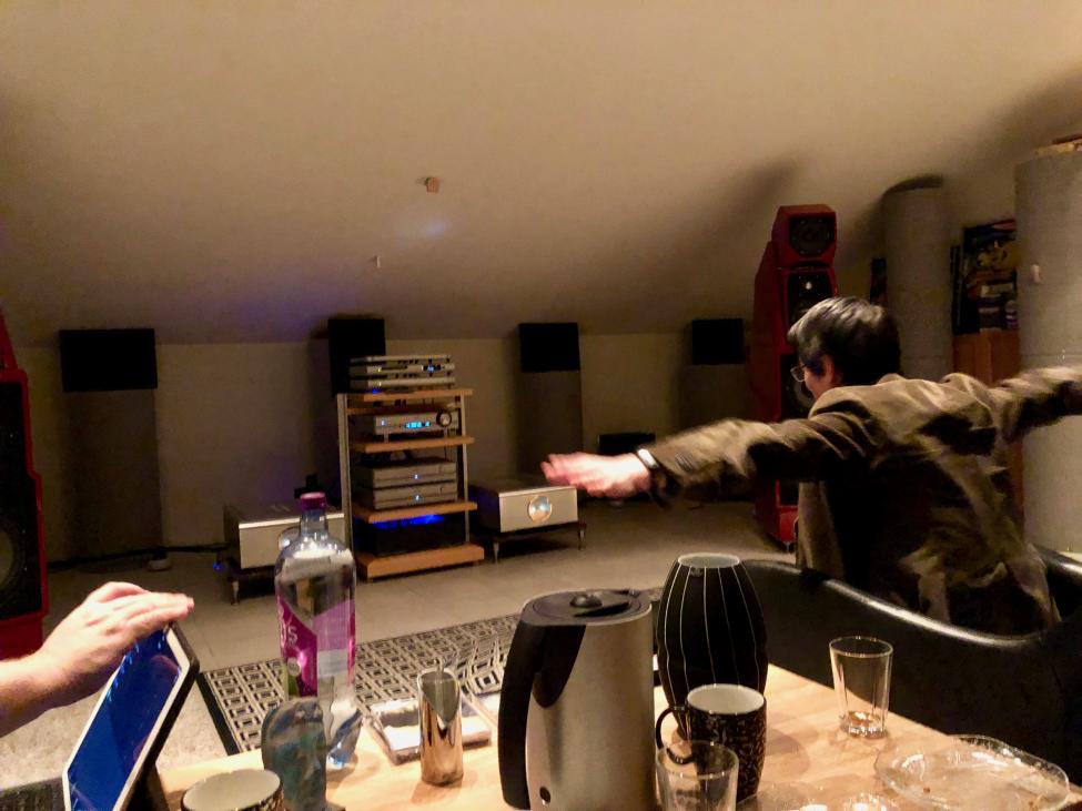 Det er også noe spesielt med store hi end høyttalere og mye membran areal som blir drevet med mye kvalitets Watt. Det blir et stort lydbilde som har en ro mindre høyttalere ikke kan matche. Mindre forvrengning og stort overskudd av kraft som gjør at impulsrespons og dynamikk er noe man ikke tenker på. Her var det bare å hengi seg til musikken og opplevelsen, uten å tenke mer på hvordan ting ble gjengitt. Vi fikk demonstrert trommesoloer, kontrabasser, stemmer, liveopptak og alt ble gjengitt med den største selvfølgelighet. Bluesbraker fikk også spille litt fra veska si og der er det alltid noe som låter høggorm. På dette anlegget låt det bare riktig.
