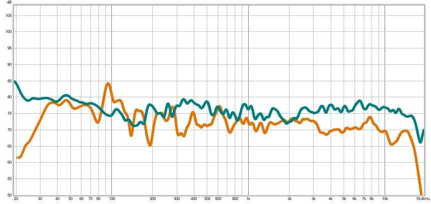 Frekvensgrafene serjo gunstige ut med bemerkelsesverdig lite romeffekter i bassen på den grønne med sbsorbenterså de gjør en bra jobb
