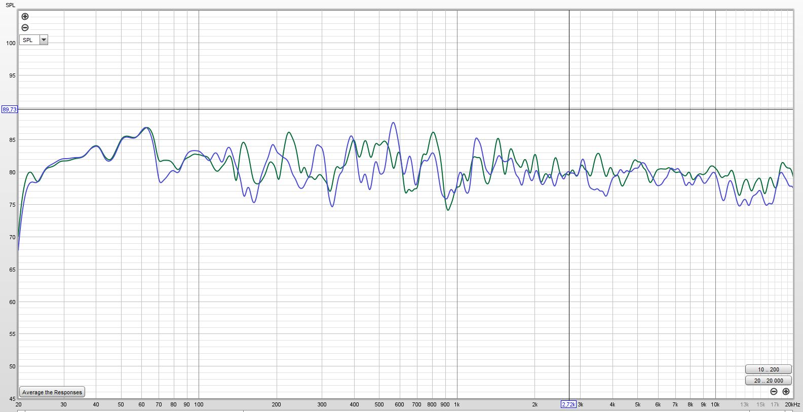 Her er en tidligere måling jeg hadde av kun fronter som spiller fullrange uten noen form for DSP: