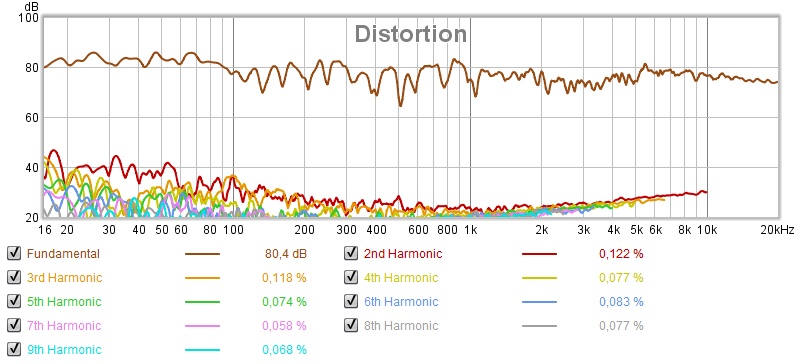 og til sist med harmonisk forvrengning vist på harmonisk frekvens: