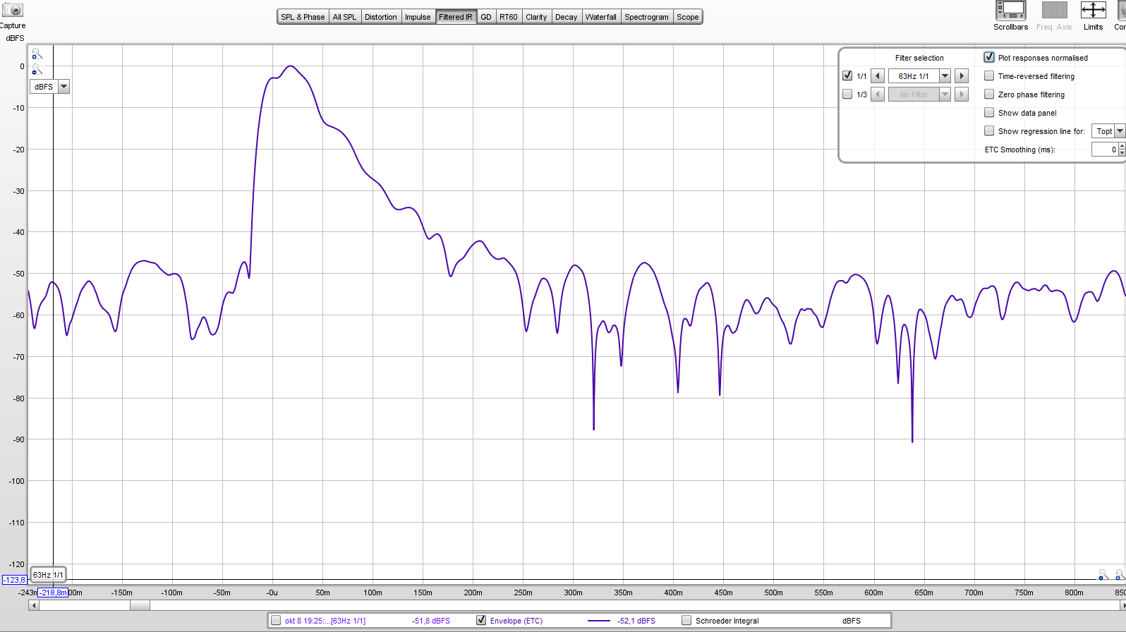 Når vi betrakter impulsresponsen betrakter vi i prinsippet frekvensrespons og fase samtidig. Det er svært ofte veldig lite intuitivt. Når vi betrakter frekvensrespons betrakter vi den delen av, og versjonen av målingen som gir den mest robuste fremstillingen av det du ser etter. Om målingen er gjort sånn eller sånn gjør ikke all verdens forskjell, og du trenger ikke tenke på om fremstillingen er en minimum fase-versjon eller om den inkluderer eksess fase. Om du i stedet vil betrakte faseresponsen blir de tingene plutselig viktige. Da må du også vite at du har målt riktig, at du har fått riktig TOF i målingene osv.