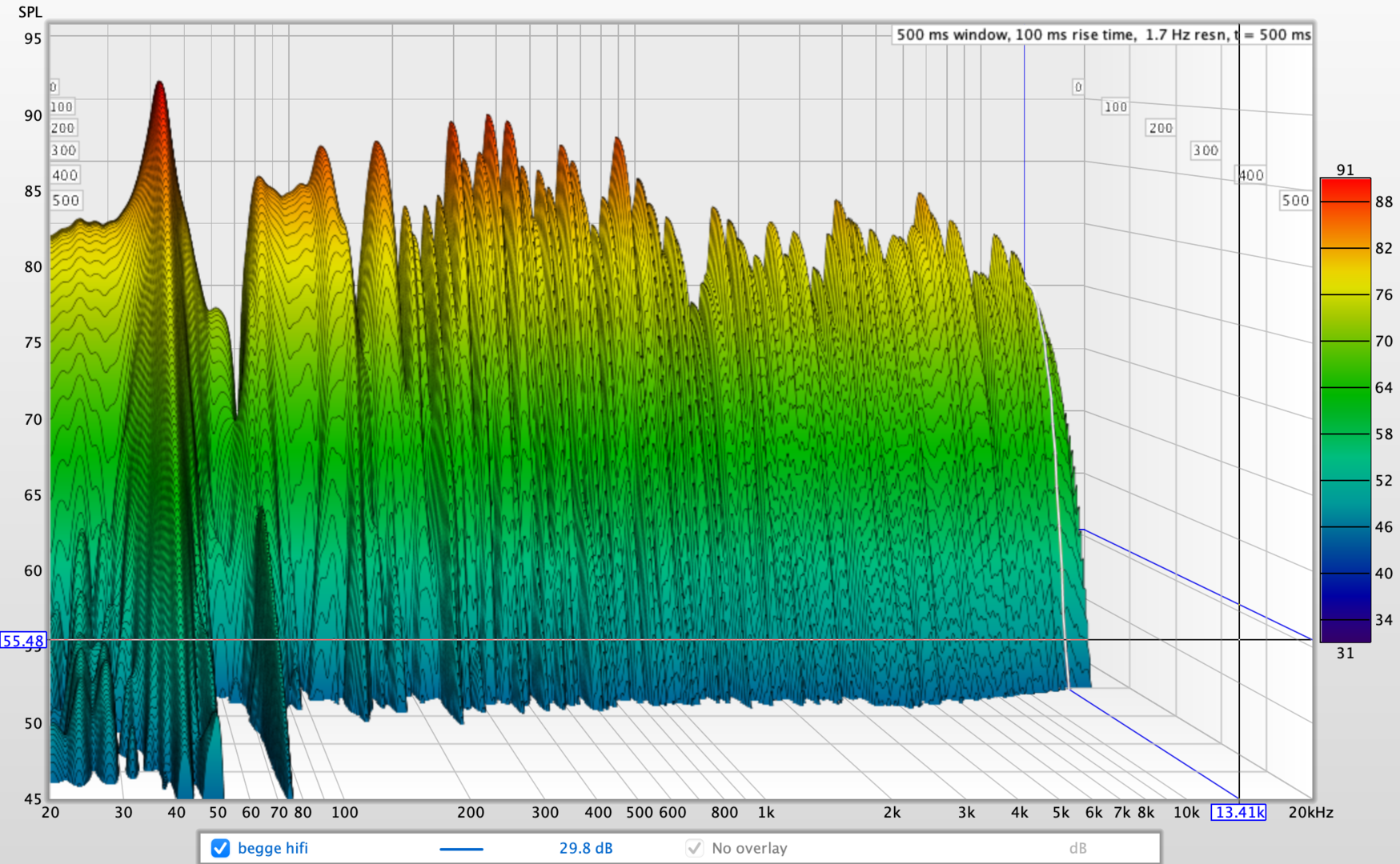 Meget mulig poenget ditt er korrekt, jeg skal ikke kverulere på noe jeg ikke har muligheten til å teste selv. Altså, jeg kan selvfølgelig sette tonegenerator på og sjekke når jeg opplever at 43 hz er subjektivt likt som feks 33 og 53 hz i nivå og decay og se hvordan det slår ut i forhold til frekvensrespons og vannfallet i praksis, men det gir ingen svar utover "interessant".
