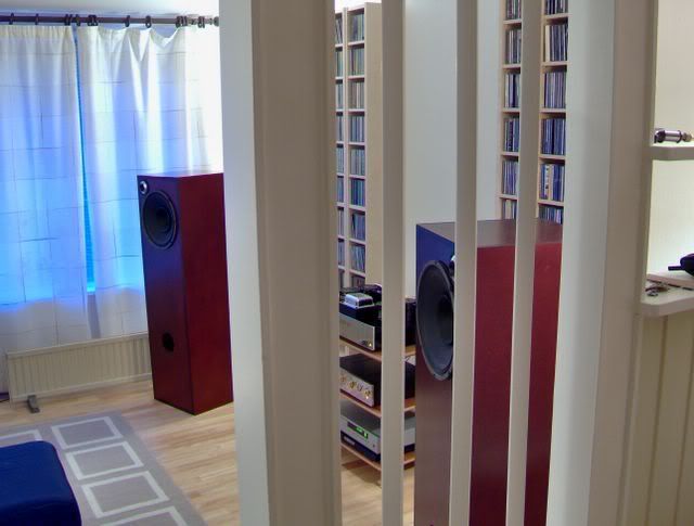 Videre har jeg benyttet meg av 1/5-dels plassering av høyttalere og lytteposisjon. Dette gir plass til hyller og bøker bak lytteposisjon. Vi får se om det er diffusjon eller absorpsjon som er beste middel her. Dette er vel også noe som man finner ut etterhvert.