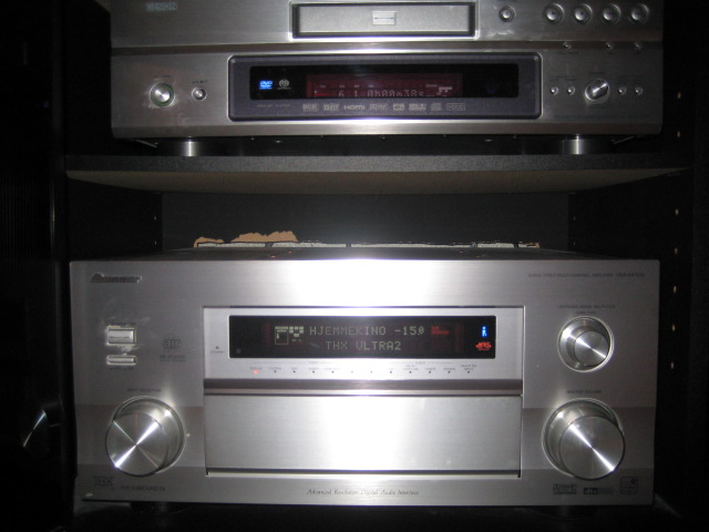 Så multikanals kilde og prosessor/forsterker.Denon DVD3910,signaloverføring via i-link til Pioneer VSA AX10 AI-S