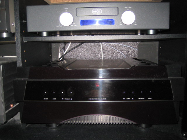 Balansert signaloverføring via sølvkabler av Geir Molid inn til Gryphon Diablo.Denne har også AV-throughput inngang så denne avlaster Pioneer'en til multikanal og Contour S3.4 står da koblet til denne.