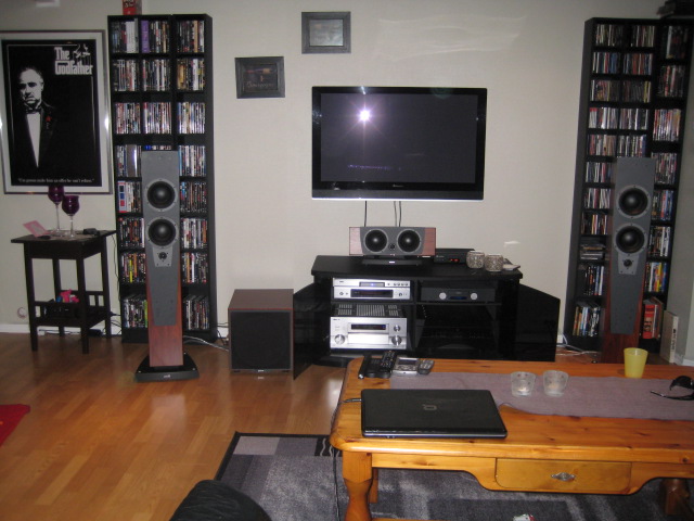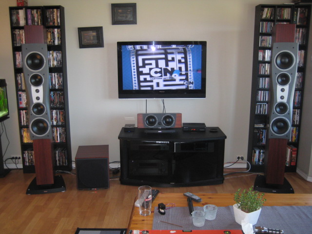 Ettersom anlegget står i bruksstua i huset så må jeg nok gå litt i kompromiss mtp plassering lenger ut-da vil de bli litt for dominerende og ta mer bruksplass.... :)