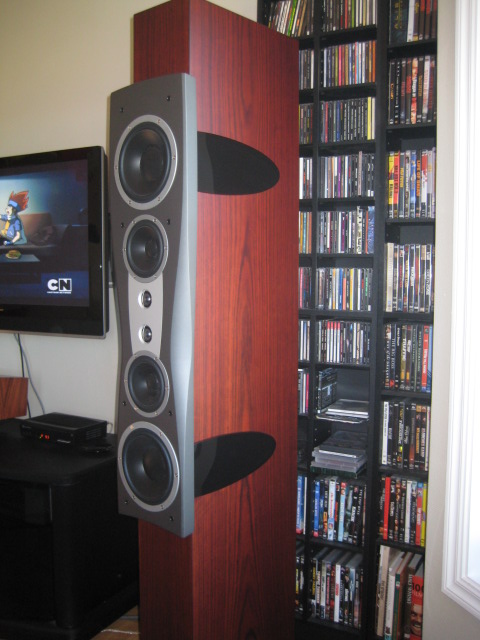 Flere sier at ettersom hyllene i bakvegg med film og CD'er har mange kanter,vinkler og små hulrom vil disse fungere til dels som bassdiffusorer og gjøre lyden godt.