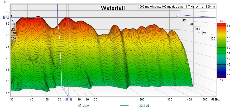 Ja det er dessverre slik att det må brutale tiltak til, noe mann har bevist.Takker for svar, Sevald. Målinger med mobil er vel ikke helt å stole på, men du vil jo se forskjell. Målingene over viser at det ble bittelitt jevnere respons, og henget i tid har blitt bittelitt mindre, under 55dB spesielt.