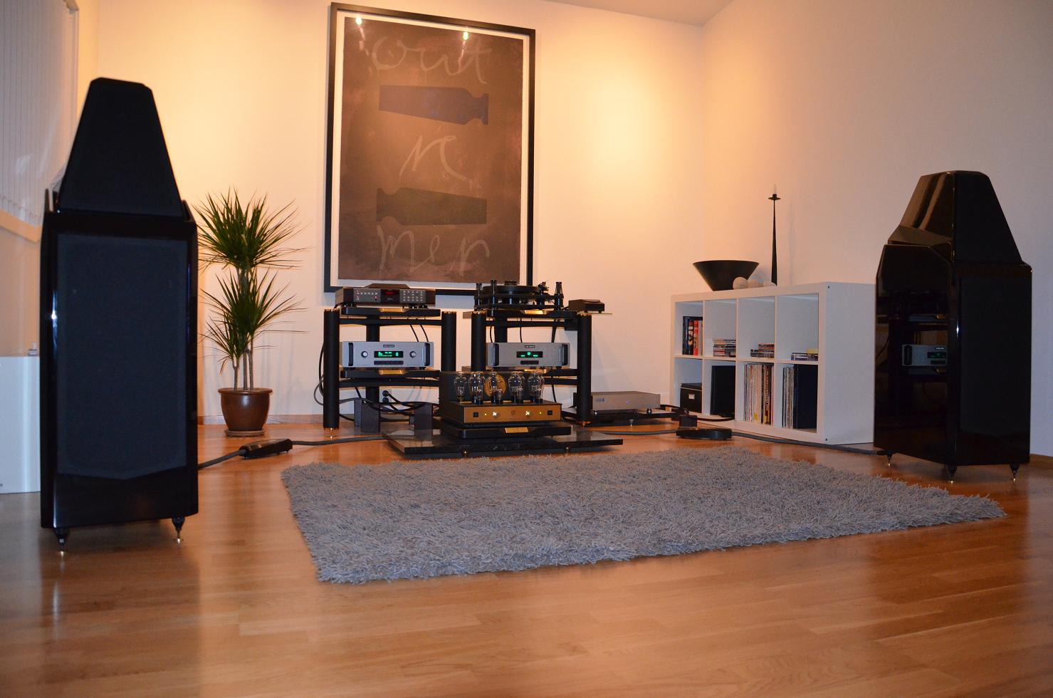 Tusen takk til alle sammen for gratulasjoner. Veldig hyggelig at dere engasjerer dere. Det har vært usedvanlig artig å pakke ut disse høyttalere. De oser av kvalitet hele veien på en meget overbevisene måte. Lydmessig merkes klare forbedringer på mange hold ift Monolith’ene. Høytalerne nå er trukket mye lengre frem enn tidligere for å unngå refleksjoner fra sidevegg. Dette åpner lydbildet og gjør dybdeperspektivet atskillig mer detaljert og naturtro. Bass gjengivelsen er også mye mer definert og kontant. Jeg var meget nervøs for at det generelle lydbilde skulle ”klappe” sammen ift elektrostatene. Dette har ikke skjedd, tvert i mot er det like stort, om enn ikke fullt så oppløst som fra Martin Logan’ene.