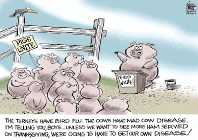 Ja, særlig. Derimot leste jeg at den første smittede grisen nå er registrert. Smittet av eieren som nøs på grisen. På tide å avlive alle grisebønder for å stanse smittespredningen?