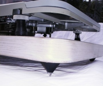 The turntable is mounted on a sceletal plinth using decoupling rubbers and the skeletal plinth rests on chrome isolation spikes, better plinths can be made from heavier substances if you really want to take this to town.