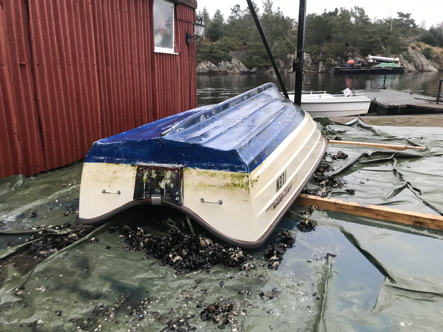 Den hadde blitt trukket under vann av vekten av blåskjellene som hang fast i den.