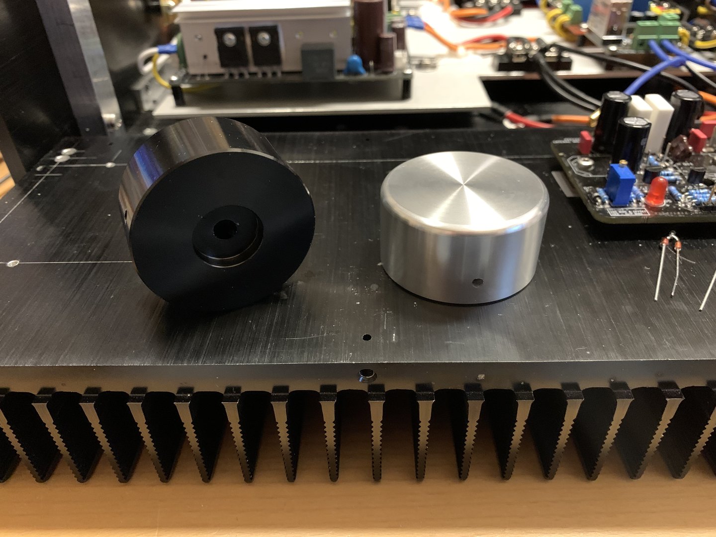 Holder på å vent fortsatt på stabilitet, men no ser det bra ut med VAS bias er stipulert til 470mV og ligger nå på 469/468mV og DC out er 0mV, og så er Mosfet bias på 215mV som den er satt til, dvs 15mV for drivertrinn og da 200mV for mosfetene som blir målt over 1Ω motstand som er satt opp i serie med kvar rail nå under justering.Og nå har denne forsterker kanalen stått på tomgang i ca 1-1,5 time. Bør nå være braBra jobba Helge !![]()