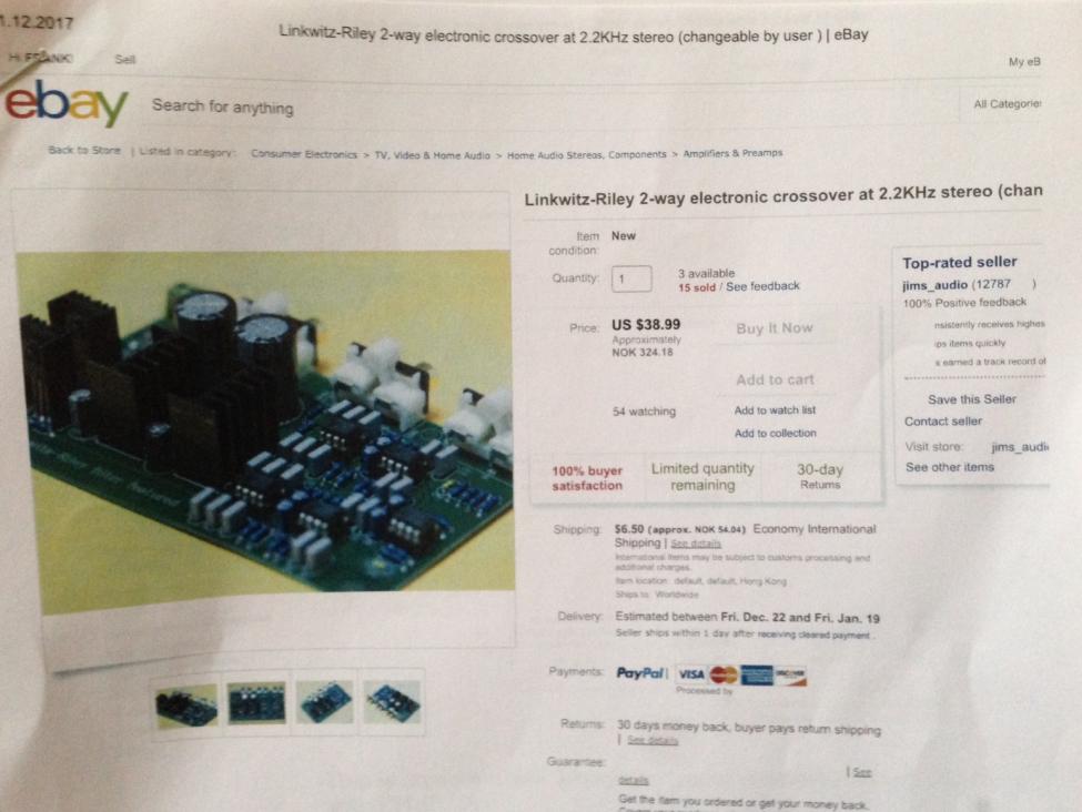 Trenger hjelp med komponentverdier i aktivt filter (2way Linkwitz-Riley).