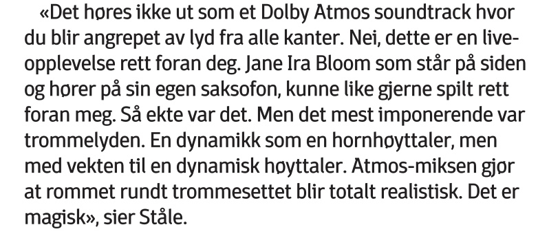 Jeg kommer til å prøve meg frem, og jobbe tett på multikanals musikk gjengivelse utover høsten for å se hvor hardt jeg klarer å skvise den formatsitronen. Men jeg er først og fremst en ( nesten:) )ordinær to kanals lytter. Men jeg må prøve når jeg kan.