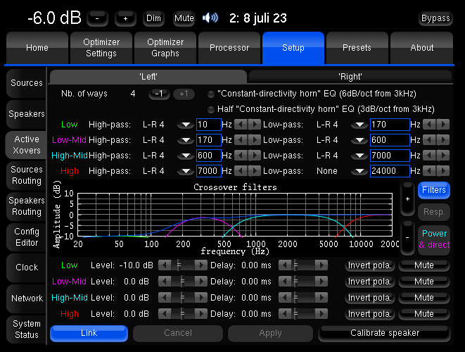 Poenget er at den justerer bassen iht target og limiter curve slik at den blir flat og fin men lager en gjennomsnitt target av L+R oppover i frekvens og matcher frekvensrespons og fase helt likt i L og R (men hvor grensene for korreksjon fortsatt settes med "limiter curve" (mulig det heter noe annet i forskjellige versjoner av optimizer)). Verd å prøve og sjekk spesielt resultater på match av fase. Som sagt rommet mitt er veldig symmetrisk så det ble svært små korreksjoner oppover men akkurat nok til at det "sitter". Samtidig, hvis du har en bølgedal v/for eksempel 2kHz før korreksjon i begge høyttalerne vil du ha det etter korreksjon også...