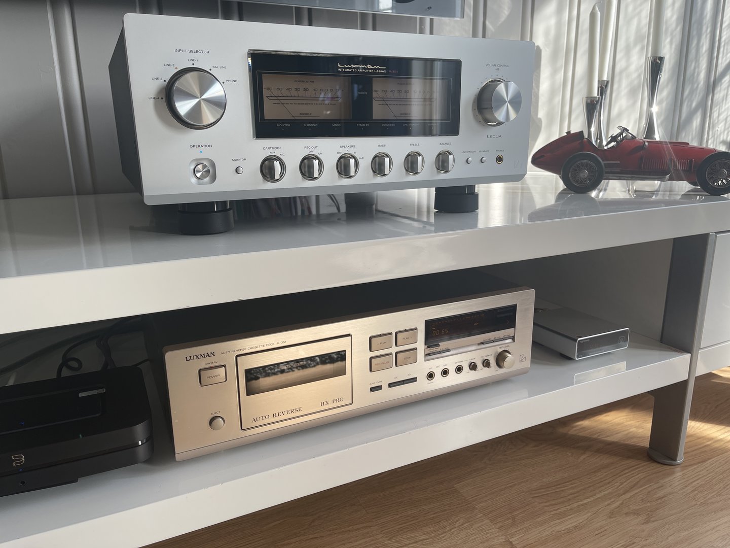 Tusen takk. Jeg har visst havnet på Luxman kjøret også. Ble et Luxman kassettdeck på meg også og enda et er på vei!Gratulerer med Luxman ampen forresten. Der har du forsterker for livet.Nå kan du la nevrosene ligge og bare kose deg med Technics forsterkere som du husker fra yngre dager. Om det er 80 eller 40watt spiller da overhodet ingen rolle. Whatever floats your boat sier dem borte i junaiten og det er jaggu med noe å tenke på.