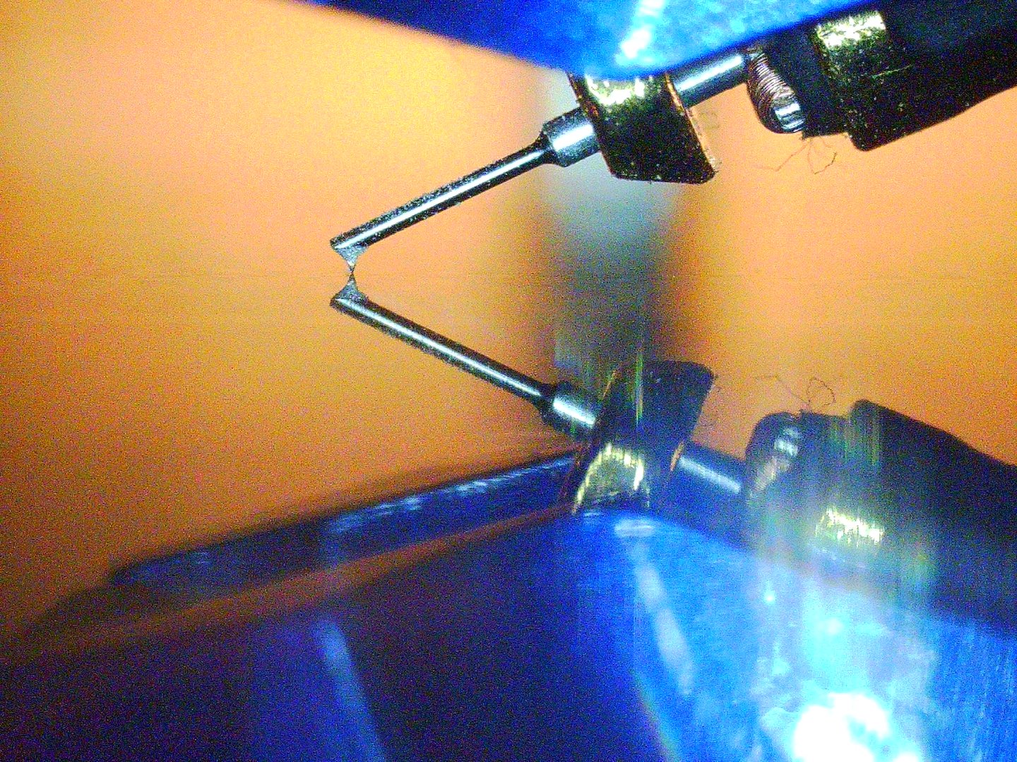 Bildene avslørte at å justere armen vannrett ga en (SRA) vinkel på nærmere 100 enn 92 (som en viss vinylpusher så vennlig påpekte). Justerte ned armen en drøy millimeter (bilde) og vinkelen var fortsatt for høy iht. målet på 92.