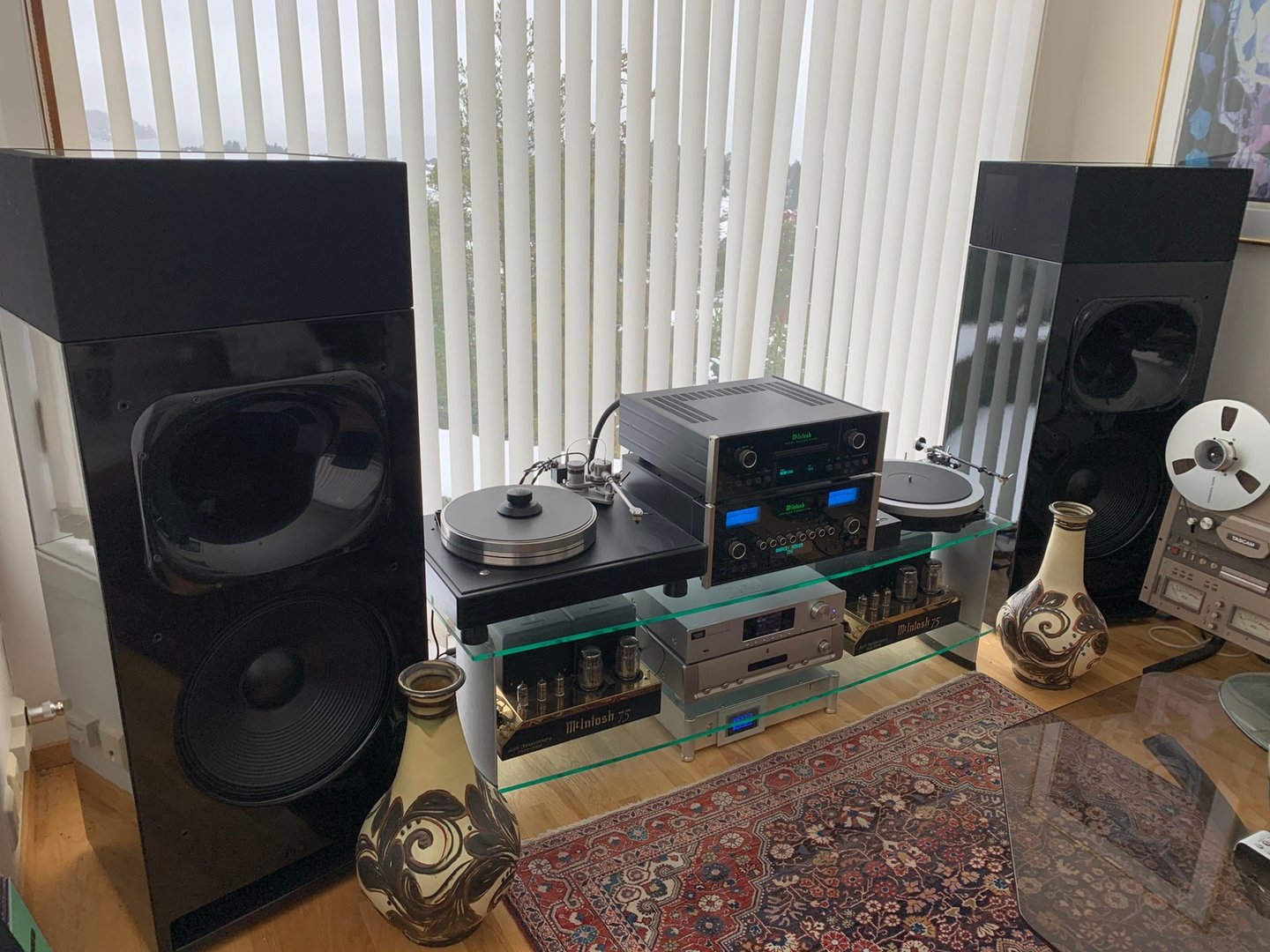 Nei. Diagonalt i rommet har vært foreslått før, men ikke forsøkt. Jeg tror anlegget da hadde blitt for dominerende. Jeg har derfor kun forsøkt å optimalisere ut fra den plasseringen anlegget har nå (som sikkert ikke er den optimale). Men, det er nå en gang en stue og ikke et lytterom. Hvis jeg ønsket det mest mulig kompromissløst hadde jeg nok tatt i bruk loftstuen, men da mister jeg det sosiale.
