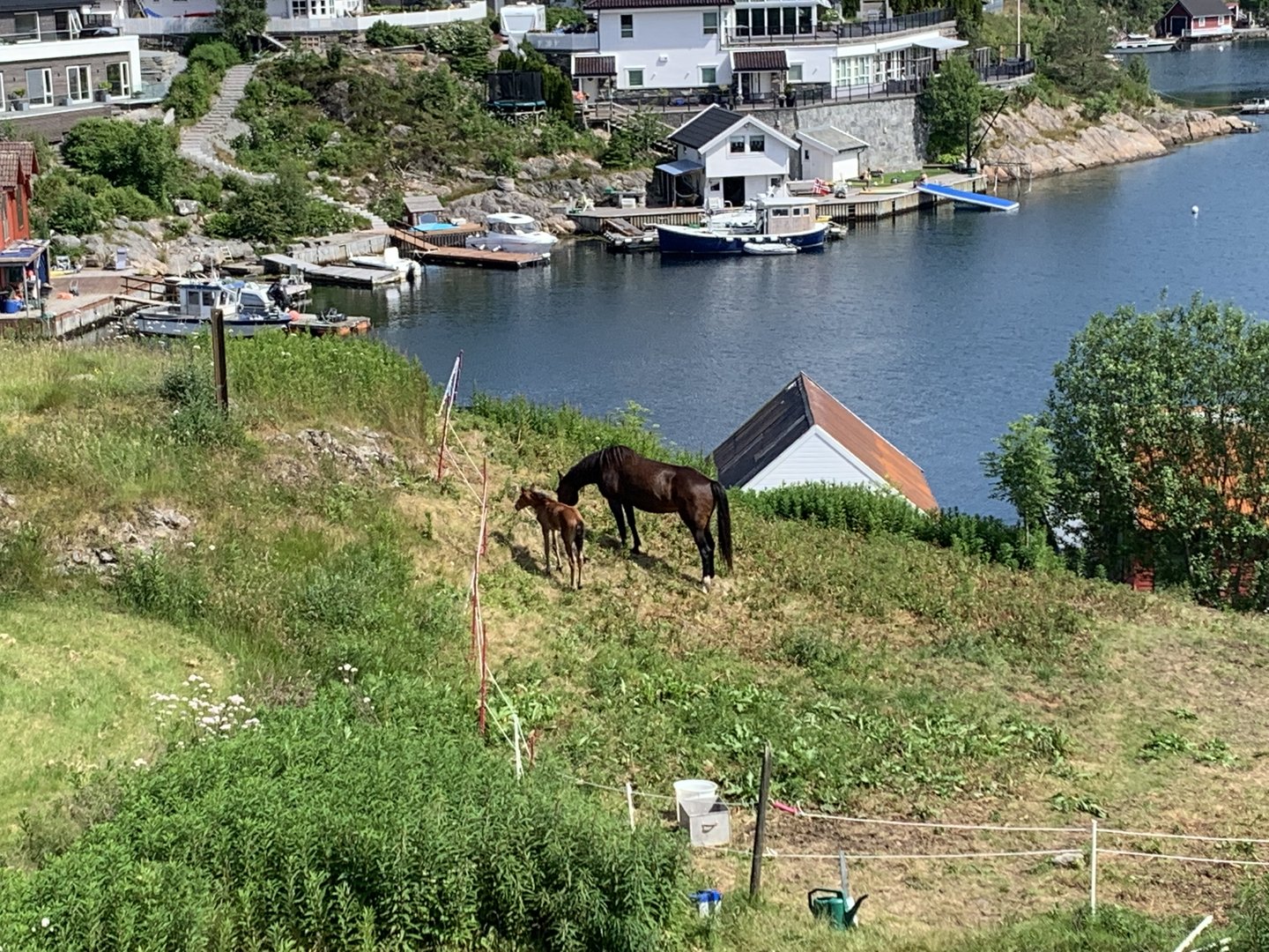 Du. Nå begynner det å ligne trivelig.Når man ser en hest med et føll på forsiden av boligen…….