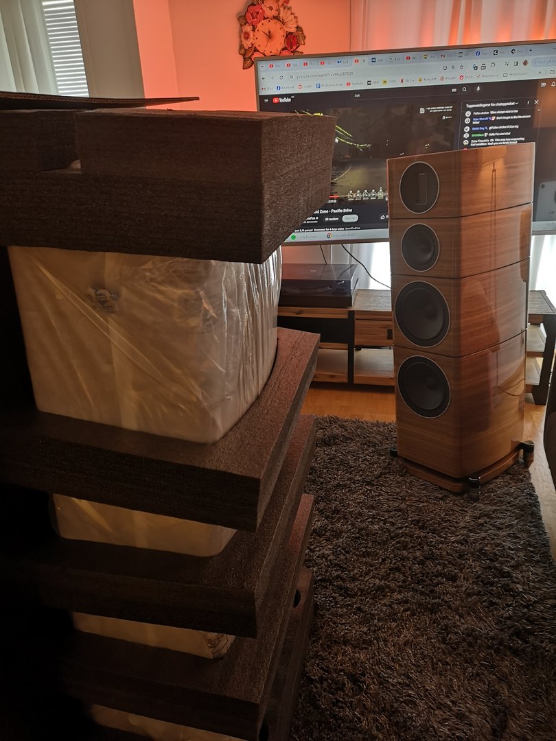 @HAREPUSEN har vÊrt hjelpsom rundt dette med Ä finne ut hvorfor de har en forferdelig ulyd rundt 90-100hz regionen. Jeg vet at mÄlinger viser en liten hump pÄ det omrÄdet, men trodde det skulle bare gi litt mer fraspark.. Anyway. De liker rett og slett ikke sofaen min. Jeg dyttet de nesten inntil frontveggen.. Uff jeg banner i kirken her. SÄ ble hele dybden pÄ lydbildet borte.. Neida, det gikk veldig bra, de er ikke sÄ fÞlsomme pÄ det. De kom seg unna sofaen og spilte opp som bare det. Alle sangene som har irritert meg med bassgitar rundt 90hz omrÄdet har avtatt.