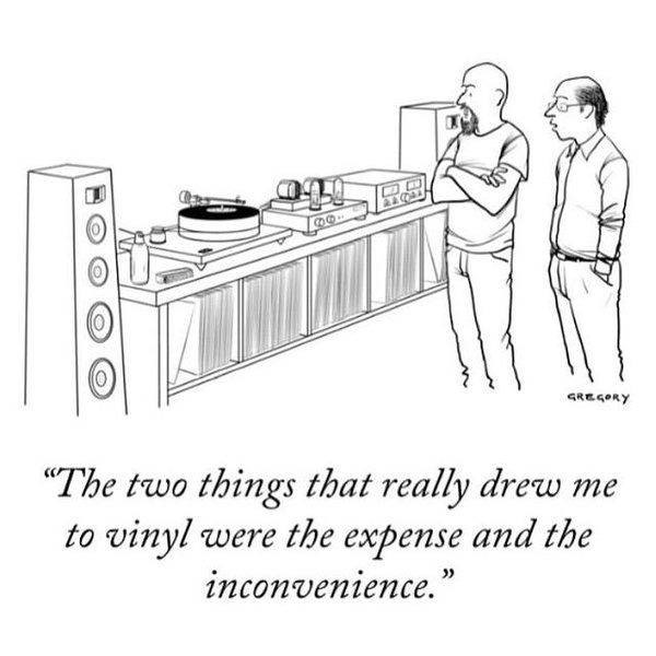 Å spille vinylplater er en så mye rikere opplevelse enn å spille digitalt lagret musikk, at det er ingen egentlige spørsmål om hva jeg foretrekker. Å sette seg ned og kose seg med musikk, etter å ha gjennomgått prosessen med å finne frem vinylplata, ta den ut av plast- og innercover, sjekke at den er ren og støvfri, legge den på tallerkenen og evt. og gi den en runde med børsten før man slipper pickupen ned på rillene for så å skynde seg tilbake til stolen med et stort deilig cover å lese/kikke på mens musikken strømmer fra høyttalerne, gjenskapt av superelegant men forståelig elektronikk og finmekanikk, er en skikkelig zen-opplevelse. Et lite, nostalgisk rituale som gir en deilig metaopplevelse i tillegg til bare det å høre musikken. Det overgår for meg - i godt monn - det å bare spille av rippet eller nedlastet/streamet digitallyd, selv om det er kjempebra og utrolig lettvint når man bare skal ha på noe musikk. CD-plater spiller jeg så å si aldri lenger, men har rippet dem til lokal server.